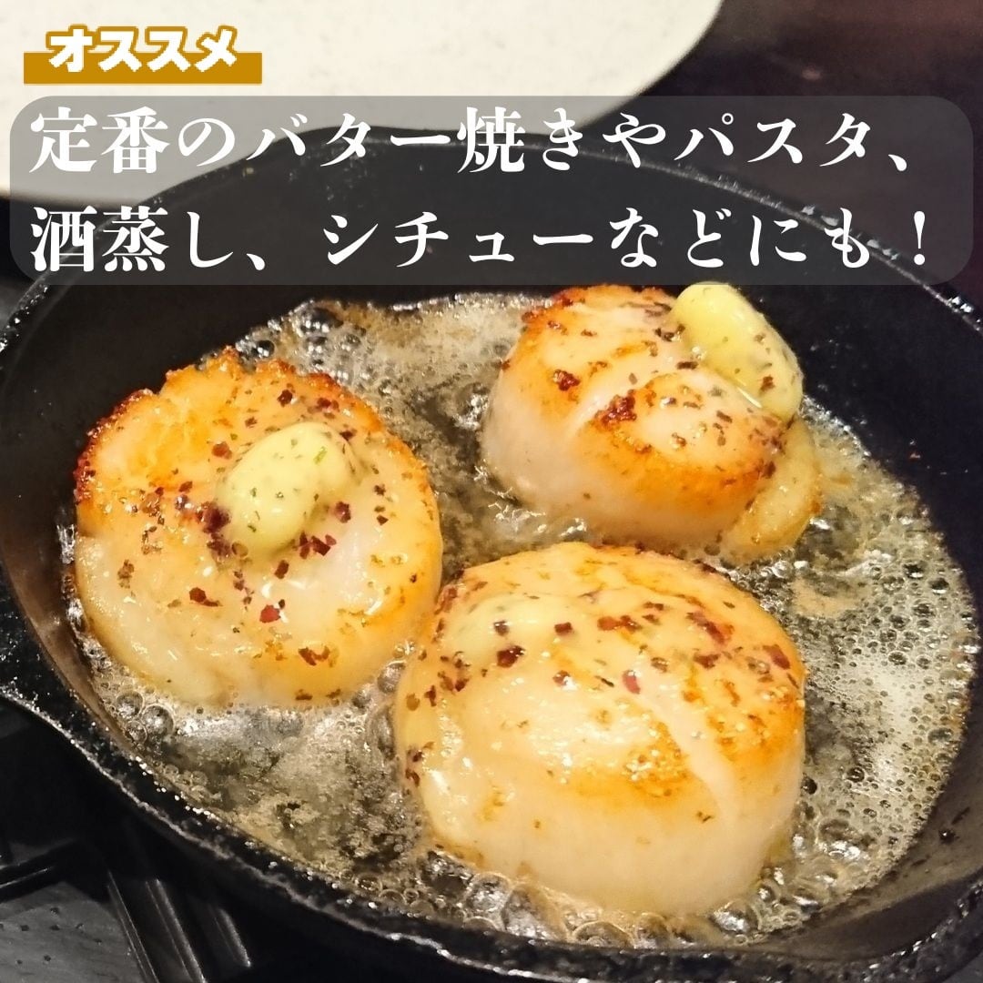 北海道産のホタテを貝柱だけに加工し、急速冷凍をかけて鮮度と美味しさを保持しております。