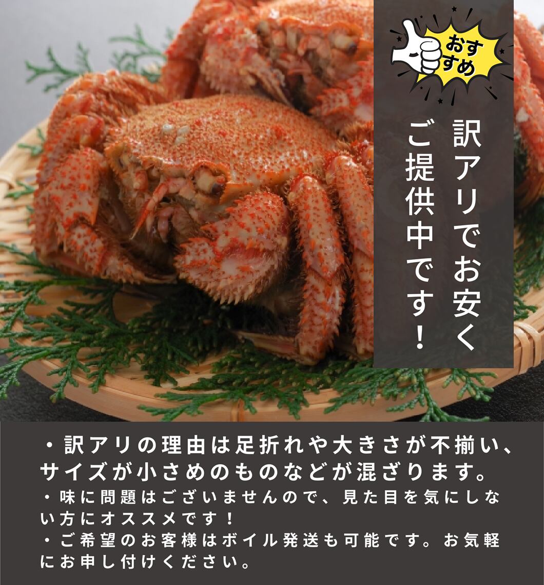 【※こちらの毛蟹はサイズ小さめ、不揃い、足折れ、訳アリ品となります。ご自宅用におすすめの毛蟹です。】
